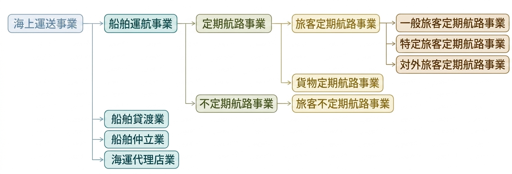 定期航路と不定期航路、旅客と貨物等の違いにより必要な手続きや要件が異なるため、事業内容に応じた正確な区分の理解が重要です。